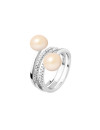 Boucles d'Oreilles Boules Pendentif serties de Véritable Cristal Blanc et Perles de Culture - ROSE NATUREL - Système Poussette - Poids métal:1.8g