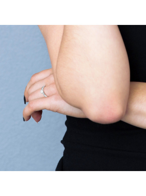 Bague Solitaire en Argent 925 Millièmes Rhodié - Pavage avec Zircons Blancs - Poids métal:2.05g