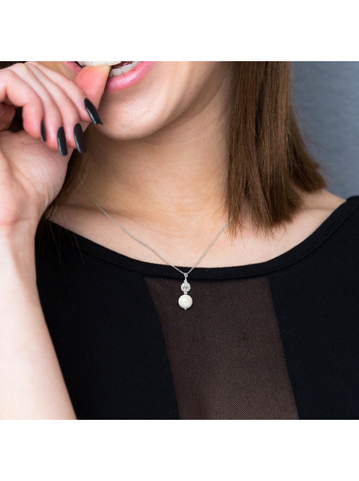 Collier Argent 925 Millièmes orné d'une Boule Pendentif entièrement sertie de Véritable Cristal Rose - Longueur 42 cm - Poids métal:1.2g