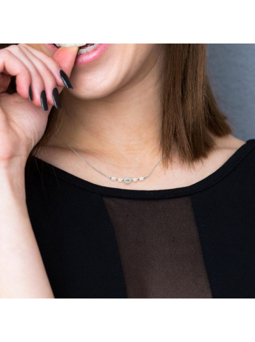 Collier Cravate "BLACK NIGHT"- 4 Boules entièrement sertie de Véritable Cristal Noir - Diamètre 6 et 10 mm - Chaine Argent 925 Millièmes - Longueur 42 cm -